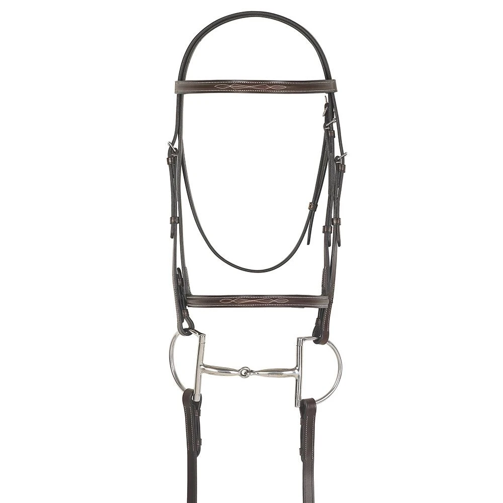 The Camelot Gold Fancy Raised Bridle with Laced Reins is a lovely, simple hunter bridle, well suited for the show ring or schooling. Affordable quality is the hallmark of the Camelot Gold Line, featuring: