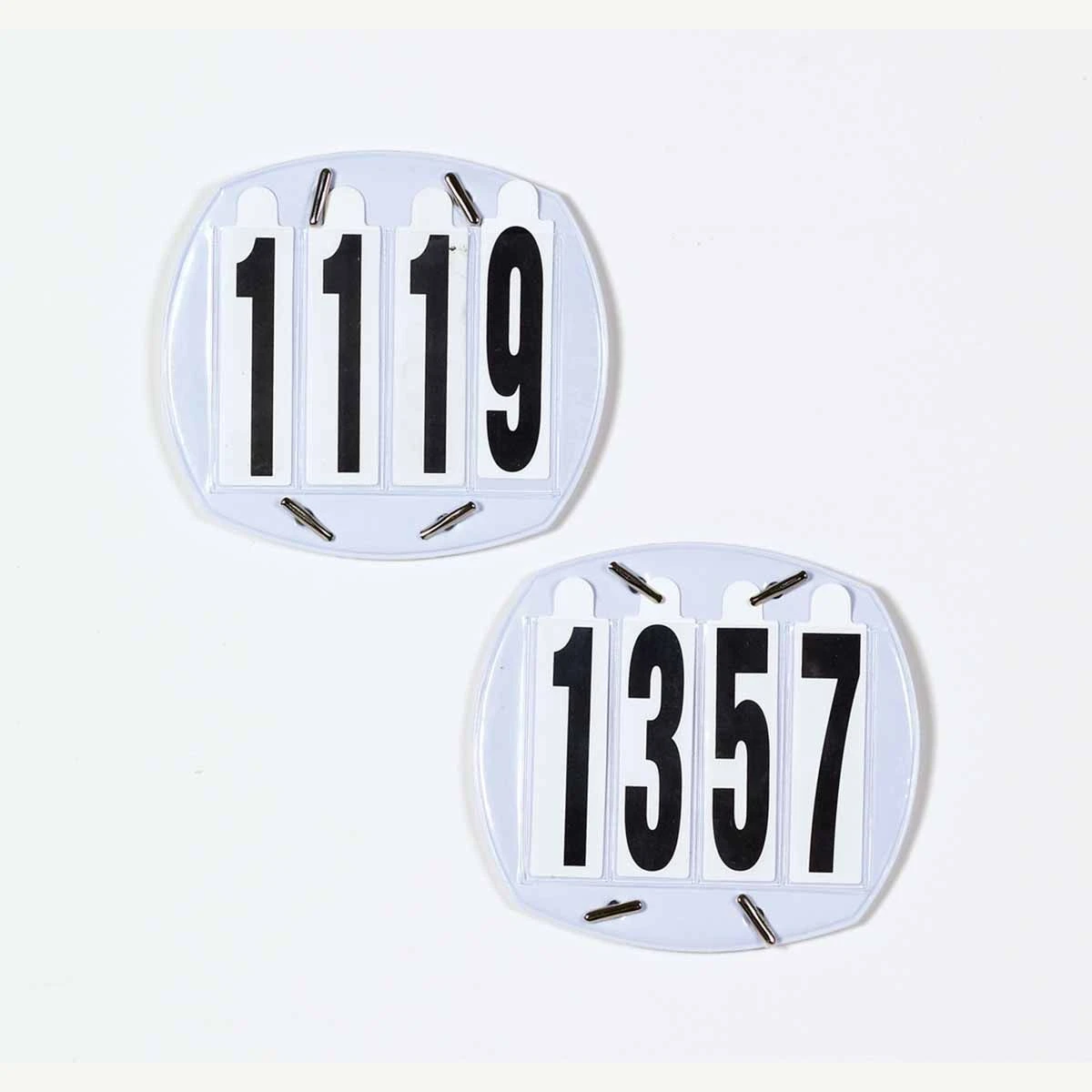 The Equi-Essential 4-Digit Competition Number Set comes with number cards 0-9 for each digit slot. Elastic straps allow you to attach these number holders to bridles or breastplates very easily. Measures 4″ x 4 ½” and sold in pairs.