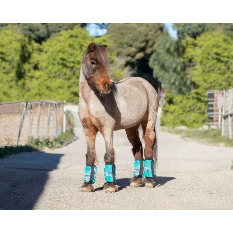 Kensingtons Protective Bubble Fly Boots for ponies feature a long hook and loop closure that runs vertically down the front of the boot and a light fleece trim for extra comfort around the top and bottom. Made with Textilene, these boots prevent injury from stomping by keeping flies from biting your pony’s legs. Can also protect your standing wraps from horses that like to pull at bandages. Sold in a set of 4.