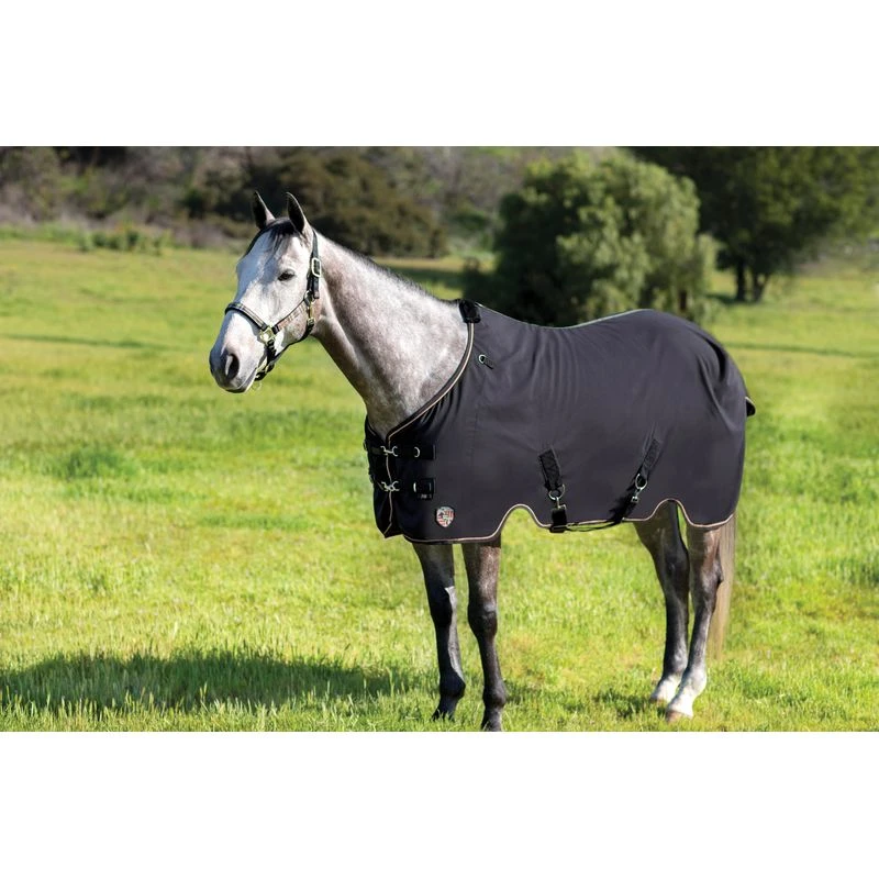 The lightweight SureFit Poly Cotton Stable Sheet provides durable protection against dirt, biting insects, and harmful UV rays.