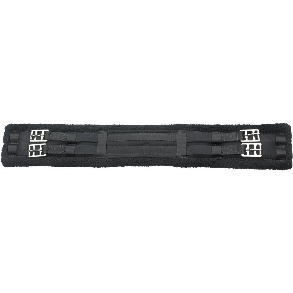 Ovation Equalizer Girths are fleece lined and easy to adjust to provide balanced pressure. Backed with 100% cotton for comfort and reinforced with nylon webbing. Heavy duty elastic on both ends. Stainless steel roller buckles. Washable. Sizes 20-30. Black.