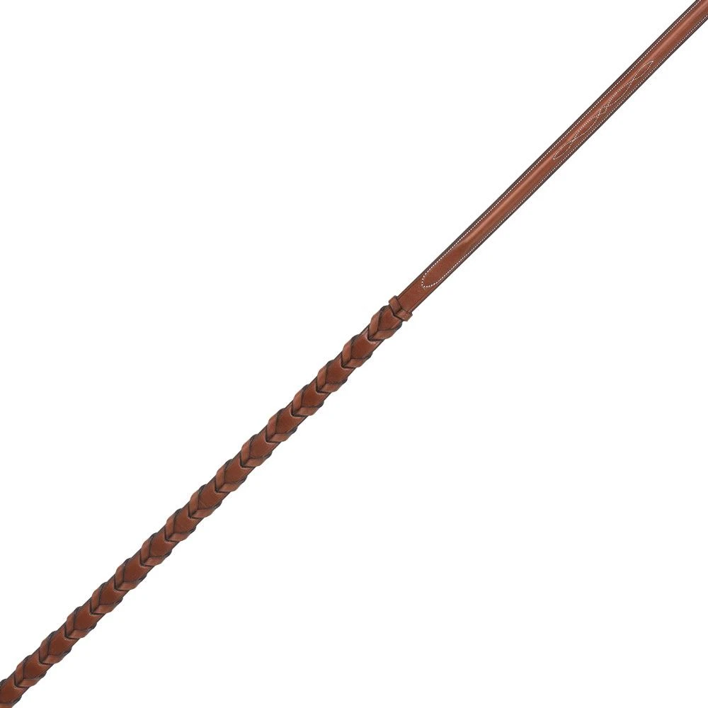 Pessoa Rodrigo Fancy Laced Reins are beautifully detailed raised laced reins, meticulously crafted from hand finished American leather, with the attention to detail that distinguishes top horse show equipment. Medium brown color 5/8″ x 54″.