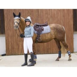 This ergonomic ear net is made from a soft, technical mesh fabric, which will help keep your horse’s head cool while protecting from annoying insects. It offers generous sizing behind the ears to reduce interference with your bridle’s crown piece. The inclusion of stretch material on the ears gives a snug comfortable fit. It features stylish silver cord piping with colored binding and coordinates with other Woof Wear saddle pads and apparel.